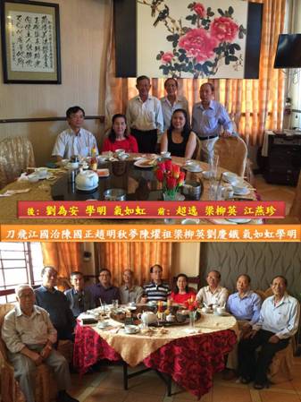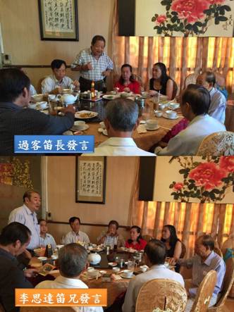 兩席在興奮攀談間,劉為安邀請了如意老闆賴遠東先生進來,介紹與梁柳英認識,談論蓄臻朱洋家鄉瑣事,點綴了聚會的情趣。