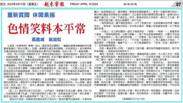 色情 笑 料 本 平 常 ( 2024.4.19洛杉磯越柬寮週報 原稿撰於2013/11月 )