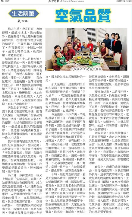 二○二三年十二月廿九日星期五發表於鳳凰城亞省時報