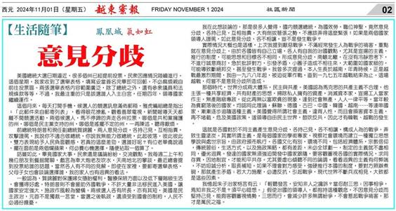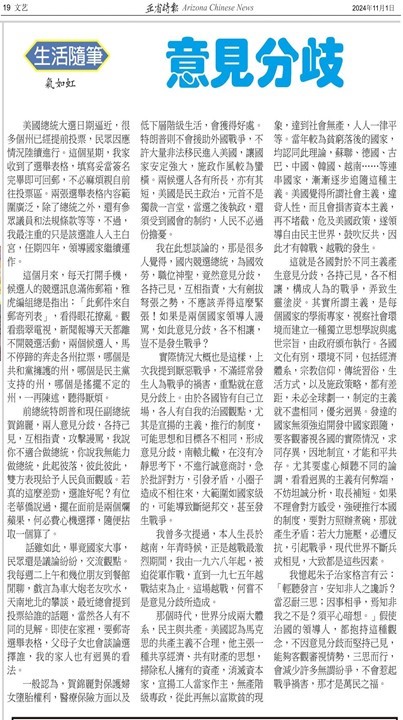 二○二四年十一月一日星期五發表於鳳凰城亞省時報
