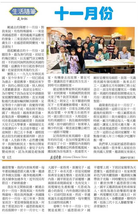 二○二四年十二月六日星期五發表於鳳凰城亞省時報