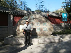 迢迢大漠費操勞 為說天驕弭戟刀 遺恨鐵蹄難遏止 殿前碑刻著勳高 注: 1-嶗山主峰高1132米,是中國海岸第一高峰。據解說,跨入太清宮山門就算進入仙界。 2-蒲松齡“聊齋志異”中的一篇“香玉”:黃生在太清宮夜讀,白牡丹化身香玉,紅耐冬化身絳雪,伴生度過寂寞時光。白牡丹現雖已枯萎,紅耐冬卻已長成參天巨木,枝葉繁茂,已有600年歷史。萬鍾:取自“書中自有萬鍾粟”。 3-太清宮有上千名道士,都十分寡言。道士被稱作“牛鼻子”由來已久,據“漢語大詞典”,老子騎青牛西出函谷關,證登仙籙,青牛也就跟著“雞犬升天“,被道士們尊為”牛大師兄“,因此頂尖道士也只能屈尊為”牛鼻子“。雖然已成牛仙,但牲畜終歸牲畜,無法登大雅之堂,所以上述叫法含有貶義。老子”黃庭道德經“、葛洪“抱樸經”都是道教基本經典。 4-長春子丘處機,“全真七子“之一。1222年率徒18人遠赴大漠謁見成吉思汗,喻以息戰愛民之道,成為後來元世祖入主中原的理論依據,但不能阻止元兵南下,1232年滅金,1278年滅南宋。現在三皇殿前還保存兩塊當年元太祖敕封碑刻,歷時780餘年,彌足珍貴。天驕:指成吉思汗。