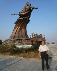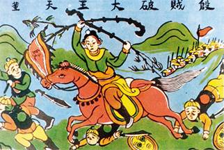 扶董天王神話在越南家傳戶曉,被尊為「聖勇」(Thanh Giong)。聖勇遺址最著名有兩處,同屬河內市:嘉林縣扶董鄉是聖勇出生地;朔山縣扶玲鄉是聖勇功行完滿白日飛升處。2011年秋風蕭瑟時,趁北行之便,我有機會遊覽朔山縣的天王遺址。 華人讀者可能對這個神話很生疏,且聽我講個梗概。 扶董天王大破殷贼 越南第六代雄王(約三千七百年前,中國殷朝早期)時,殷賊大舉進攻越南。雄王派使者到各地求賢抗擊侵略者。 雄王是越南史前時期,二千二百年共有十八代雄王,平均每位活了120多歲!為了自圓其說,有些學者「考證」出每代雄王包括若干代「小雄王」,我們姑且當做聽故事吧。 扶董鄉有一位未婚母親產下一男孩,取名阿勇,三歲還不會說話。當王使傳話征求賢才時,阿勇忽然開口對母親說:「媽媽請使者進來說話」。他媽媽愣了好久才把使者請來。阿勇從容地對使者說:「請稟報王上,為我鑄造一匹鐵馬、一副盔甲、一根鐵棍,我將赴沙場殺敵」。 要求得到應允。整村人忙著為他做飯,多少飯他都照收不誤。吃完飯,他一個伸腰,長成一個威武的壯男。全國鐵匠日夜不停忙著打鐵,為他鑄造鐵馬、盔甲、鐵棍。阿勇戴盔執棍,飛身上馬,鐵馬長嘶一聲,口噴烈焰,飛一般奔上戰場。 阿勇手執鐵棍,馬吐三昧真火,衝入敵陣,所向披靡。鐵棍折了,他就拔路旁的黃竹當武器,殷賊大敗,屍橫遍野。功成後他在朔山升天。 扶董天王所處時代還是青銅器早期,哪裡來那麼多鐵器?一定有神助! 朔山天王祠 越南有歌謠道: