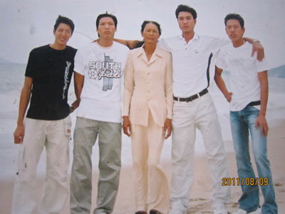 巨人趣談 吳氏袈大娘高1..8米,是村裡婦女的“最高”。少時,大娘的父母曾為她的婚事發愁,好不容易才為她物色到高1.74米的女婿(後來死於車禍)。他們全家務農,僅有的幾分地不足以餬口,靠撿遺穗和摸魚維生。雖然靠番薯、木薯過日子,但這對長人的四個兒子個個鶴立雞群:長子吳文哥1.9米、次子吳文景1.8米、三子吳文功1.94米、特別幼子吳文喬1.96米,是村裡男丁的“最高”記錄(下圖)。事實證明只要吃得好就會長高的說法不足為信。 吳文喬15歲就高1.7米,但瘦骨伶仃。他舅父、慶和省前國會代表、高1.8米的吳文劒把他帶到芽莊學足球,但他手足慊太長,沒處擺放;改學排球,一舉成名。吳文喬提攜他弟弟學排球,雙雙成為國排主攻手,吳文喬還是國家隊隊長,是越南唯一援外(印尼)排球國手。