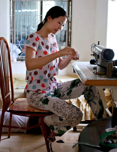 吳氏家族還有一個小弟弟吳文峰,14歲就已高1.75米,如果給美國籃協NBA發現,說不定將成為第二個林書豪。 在這個村落,我們可以隨便“捕捉”到一雙“玉腿”(左圖),不用看臉龐,我們也可以想像,她一定長得很美。 “長腿族”的喜與憂 以前,那家出了高個子,父母搖頭歎息:“dài lưng tốn vải”(身長耗布),一無是處。百多公斤,飯吃得多,裁衣多費布料,在包級制時代,是難於承受的。床鋪要訂做2.2米長,成衣、鞋子無法買到現成,也帶來不少麻煩。 1992年,越南選美賽在本市潘庭逢體育場舉行。應答“理想中的丈夫”這個問題時,亞姐韋氏東回答:“我理想中的丈夫無論身材或智慧都要比我高出半個頭”。贏得了滿場掌聲。要知道,韋氏東高1.75米! 上述答詞反映了越南傳統婚姻講究匹配,庭場姑娘“睥睨群雄”,只有在村子圈裡轉,要嫁出去可難了。 今天,以高為美,庭場姑娘聲名大噪。外地男子,慕名來到庭場村,都為這裡的姑娘都顛倒,以娶得高妻子為榮。 鄰近和平省一位身高只有1.6米的先生迎娶了高1.75米的庭場姑娘吳氏玄。結婚那天,新郎要站在一張矮凳上才能拍照,被村民譏笑“一對長短筷子”。如今,他們的頭生子已15歲,高1,7米,令村民大開眼界:庭場姑娘有改善基因的效果!吳氏玄偶爾回娘家,雖然半老徐娘,但一雙長腿,風韻猶在(下圖)。