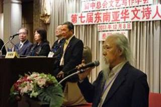 下半場大會進行了專題演講。著名詩學家、中國西南大學呂進教授作了“東南亞華文詩歌的中國參照系”主題發言。他令人信服地論證,華語是世界上使用人數最多的語言,由中國、東南亞、美歐澳三大“板塊”組成,也就意味著中國板塊成為當然參照系。他說,藝術來自生活但要高於原生態生活。常人是寫不出詩的,但只要進入寫詩狀態,洗掉俗氣與牽掛,從非個人化進入詩的世界,常人一定成為詩人。他說,詩是“空白”的藝術。高明的詩人善於以“不說出”來傳達“說不出”。 去年,我市三位詩人江國治、故人、浮萍出版詩集“空白集”,取名頗具匠心。 馬來西亞著名詩人吳岸作了題為“東南亞是詩的沃土”的發言。他說,東南亞各國是詩的國度,是詩的沃土,具備了豐富的詩創作資源而未被充分開發。各國的壯麗山川,神秘的歷史,原住民的文化,華人先民的滄桑,都是取之不竭的題材。受他的啓發,我聯想越南更是酷愛詩歌的民族,越語富於音韻、節奏,越文詩歌跟漢語古詩是相通的,越南應該更是一塊膏腴的土壤,但從中吸取營養,我們做的太少了。