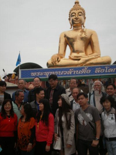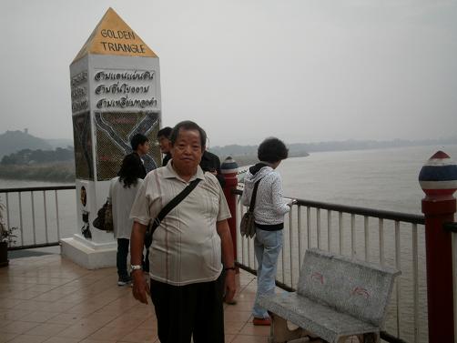 “金三角”今已非昔 觀看了本市電視台播放的38集連續劇“金三角的秘密”,我的好奇心油然而生。這次到泰北旅遊,我終於如願地踏上這片世人曾經聞之變色的死忙地帶。 寧靜的三邊地帶 從清萊往北走42公里,我們來到索拉——金三角的中心地帶。這是湄公河與美塞河交匯的三角洲地區,離清盛縣城11公里,與緬甸、老撾隔河相望。泰国在高100米的山包上设立观察站,我们拾级而上,山頂有一座4米高的大理石石碑(下圖)。碑上用英、泰文書寫“金三角”字樣,下面是金三角簡圖。