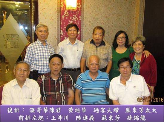 晚上,黃君邀請大家到愛華二酒樓雅聚,蘇東芳君輕車熟路,馬上召集了滿滿二圍,把盞言歡。我們終於重續了六十多年中斷的友誼。(下圖)