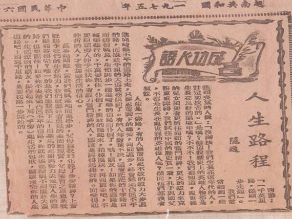 刊登於一九七五年農曆甲寅年一月六日西堤成功日報副刊〔成功人語〕專欄 筆名隱逸