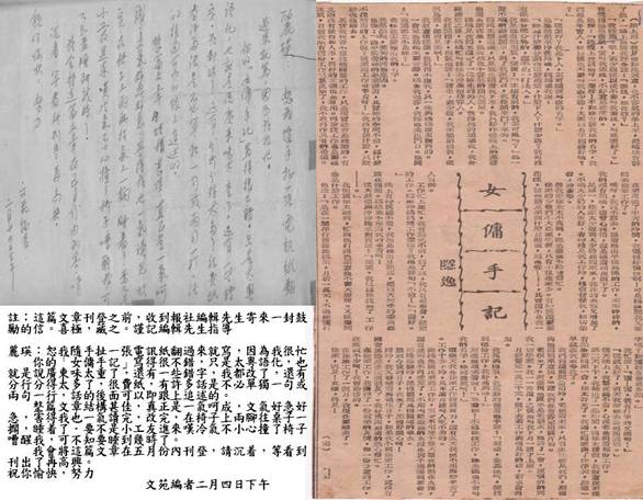 你的「女傭手記」寫得很不錯,只是太粵語化,也就是說廣東味太重了,還有一些錯字,我都改了,還有分行分得太多了,很費紙,有許多話是不必單獨一句或兩句一行,話的後面可以即跟上追述的。