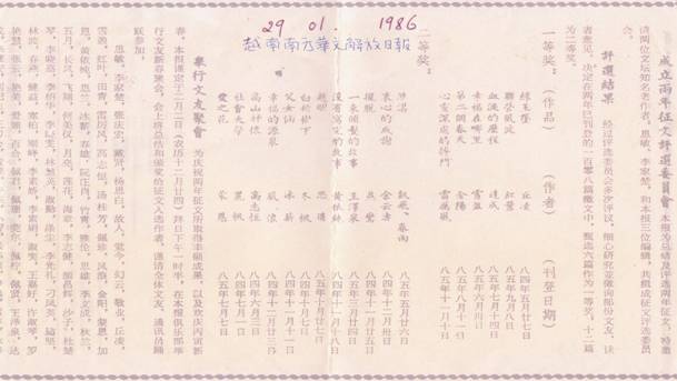 刊登於一九八五年九月八日越南南方華文解放日報筆名紅葉