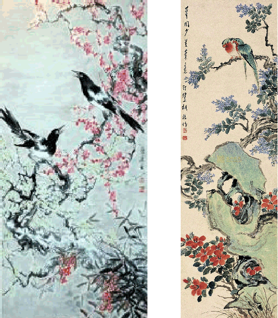 這四幅寫意畫中,花卉秀麗雅逸,生動勃勃;鳥類則神態各異,栩栩如生。作品以物趣與情趣相融合,實為同類畫作中之佳品。