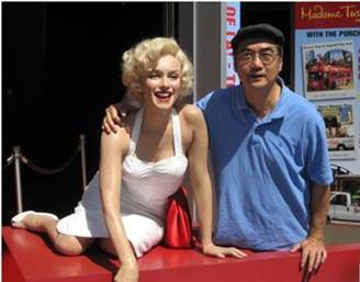 Hollywood 中國戲院旁之瑪麗蓮夢露塑像及筆者 (8-18-2012)