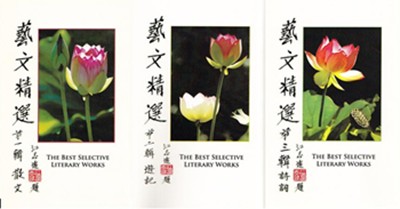 藝文三輯: 封面由女史夫君江志遠詩家題字,又配三款清荷,清麗脫俗。封底各有書家李鶴崑,甘富忠,及彭秀娟書法及女史照片,引人入勝。