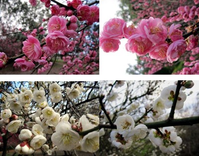 【序】:公元1992年2月7日(日皇平成四年),日本水戶巿偕樂園(Kairaku-En Park, Ibaraki, Japan) 與美國南加州羅蘭岡巿沙巴林公園(Schabarum Regional Park, Rowland Heights, California) 締結姐妹公園,茨城縣知事竹內藤南於沙巴林園僻壤處,贈植梅花數百株,並立碑以記。所植皆多瓣名種,粉紅,深紅,雪白三色。今已逾二十年矣。每屆隆冬,見老梅盛開,氣象悅目,昨日凌晨偕妻赴園,晨光花影,已六度為賞梅來,人閒趣雅,乃得照影近百,題詠梅七絕十二,記斯事。(2013.3.17)