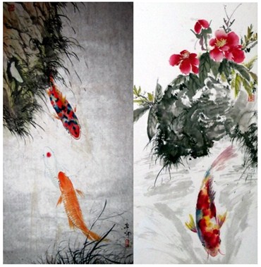 嫂嫂陳碧霞女士所繪錦鯉二幅