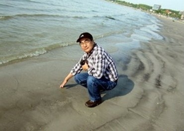 愛沙尼亞波羅的海試嚐海水 (筆者内子攝)