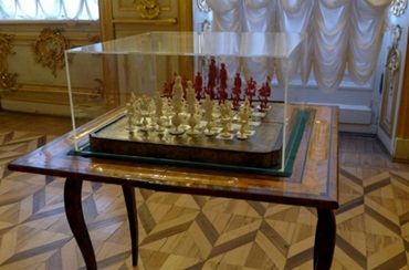 白象牙紅珊瑚西洋棋具今藏聖彼得堡冬宮中。