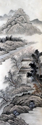 題内子所繪《草廬山水圖》