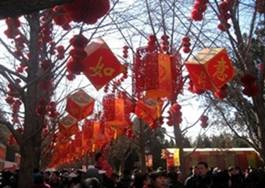 夾道花燈送吉,遊人恰似遊蜂。 甜果香糕迎福馬,此處新春年味濃。滿園中國紅。