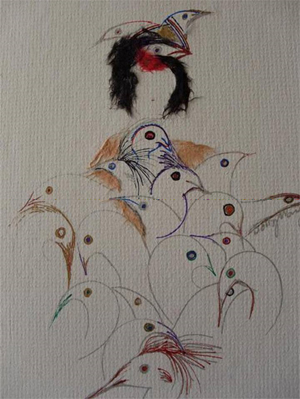 其實惡夢情境本是很美的一幅圖畫,一隻色彩繽紛幾何圖形的鳥