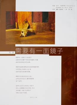 雜誌封底上的照片還算印得不錯,色彩和影調都比較接近原作,光暗對比較弱,因而畫面欠了一點閃爍的亮麗。詩人署名馬俐,詩的題目是《需要有一面鏡子》。