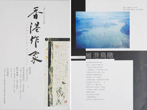 『香港作家』雙月刊2015年五月號的封底採用了我的航拍照片《維港鳥瞰》和詩人度母洛妃的詩。